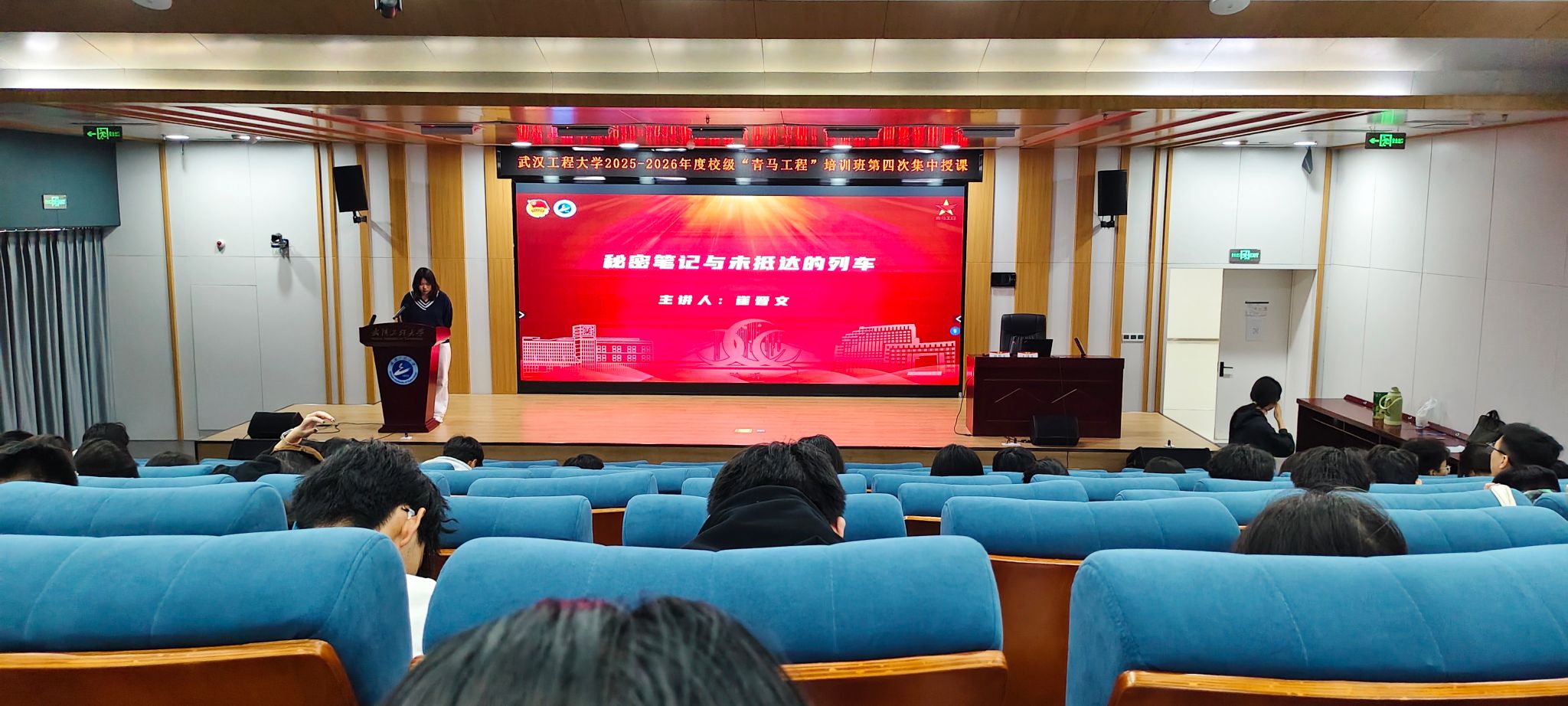 本网讯(通讯员 蔡依可)11月15日下午,武汉工程大学2025-2026年度校级“青马工程”培训班第四次集中授课在流芳校区教育教学综合楼102报告厅顺利举行。华中科技大学马克思主义学院教师夏语,我校马克思主义学院教师崔晋文应邀为全体学员授课。夏语老师以《荒岛求生与人类解放——从一棵苹果树理解马克思的共产主义理想》为题,以“荒岛苹果树”这一生动思想实验为切入点,引导学员们思考生产资料占有与权利分配的现实问题。他通过分析“...