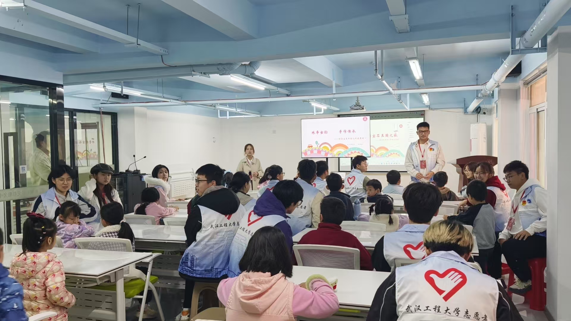 活动伊始,讲解志愿者通过生动有趣的PPT向孩子们介绍了和田玉的历史文化、象征意义及发展历程。讲解过程中穿插图片、故事与动画,孩子们听得津津有味,与志愿者们积极互动,现场气氛活跃。
