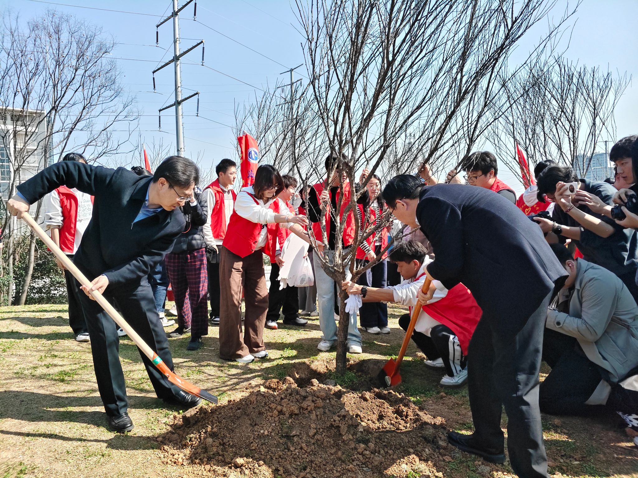 本网讯(通讯员 季凯)春风吐绿,草木初荫,正是植树播绿好时节。3月12日下午,学校在流芳校区凤鸣坡开展“厚植绿色根基 共育青年未来”第48个植树节义务植树活动。校党委副书记、校长张彦铎,校党委副书记李志旭,校党委常委、纪委书记方文海,校党委常委、副校长喻发全,校党委常委、副校长、组织部部长马小龙,副校级干部朱青林出席本次活动,和工大青年一起“植”下希望,收获硕果。