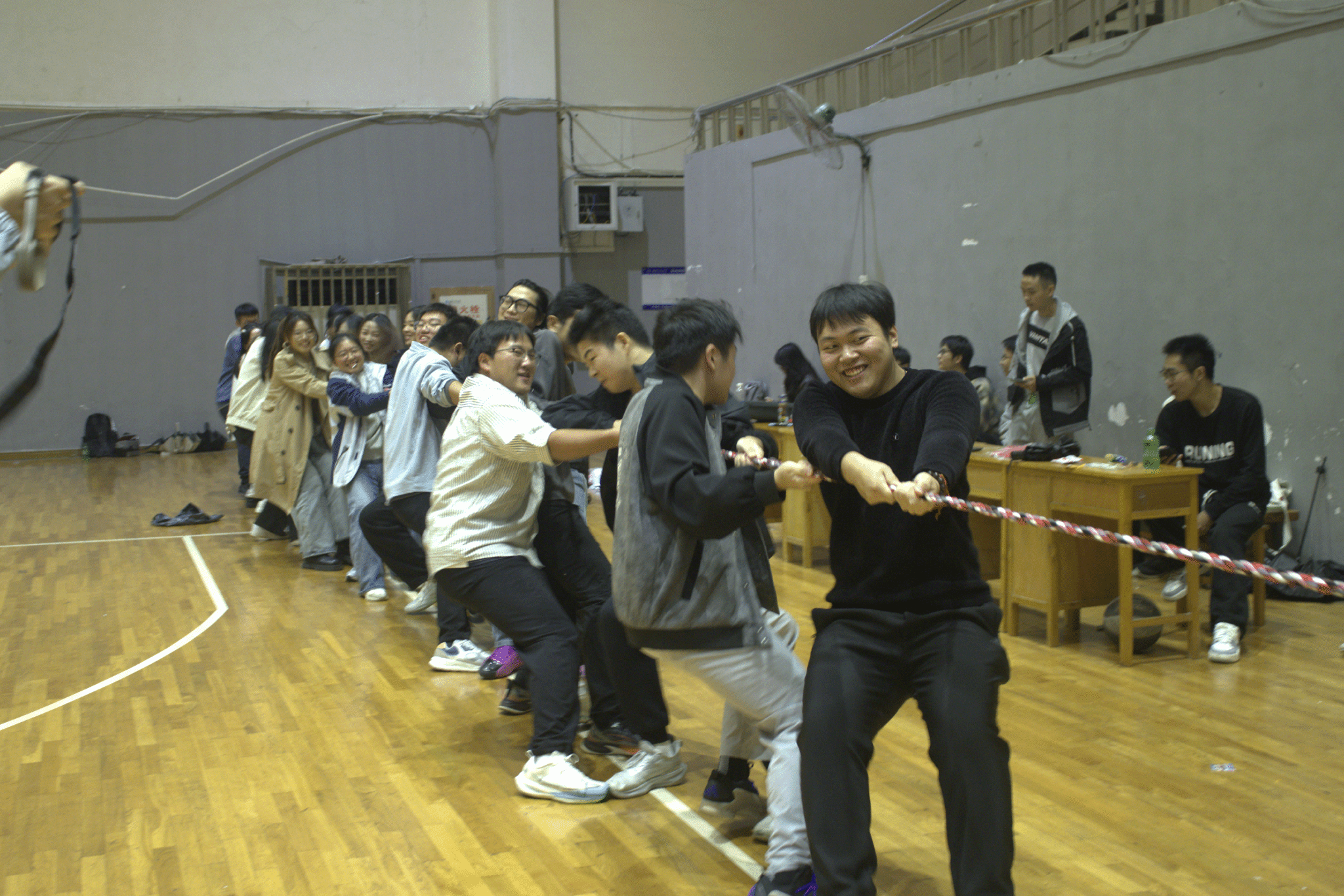 活动在轻松愉快的“松鼠与大树”破冰游戏中拉开序幕。同学们在奔跑与互动中迅速拉近距离,现场气氛逐渐升温。紧接着进行的拔河比赛将活动推向第一个高潮,各队成员齐心协力、奋力拼搏,充分展现出团队合作的力量与激情,场边加油声、欢呼声此起彼伏。