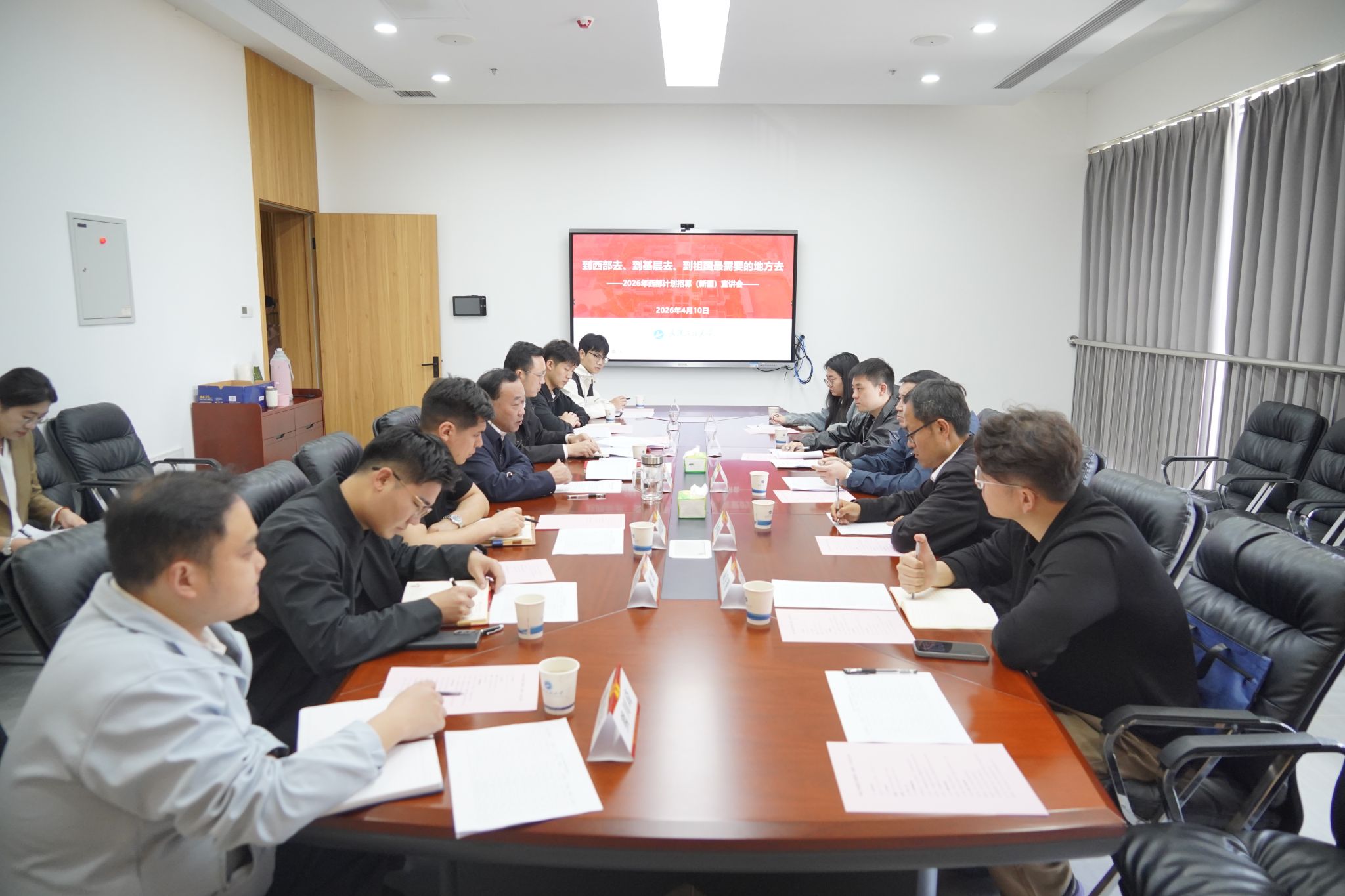 各参会代表围绕招录计划和服务政策与团新疆区委、团湖北省委领导老师进行深入交流。座谈期间,西部计划招募(新疆)宣讲会同步开展,宣讲团面向毕业生详细解读了招募条件、岗位方向及政策保障等,并围绕补贴待遇、职业发展等关切问题为同学们现场答疑解惑。